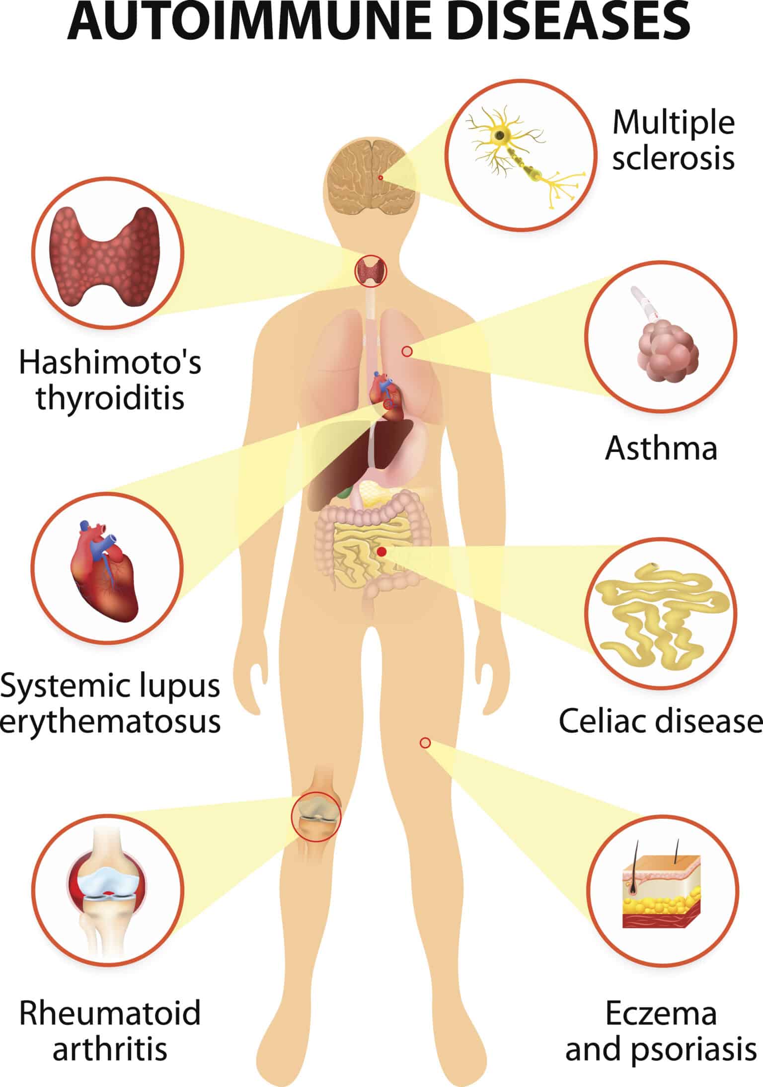 A properly functioning immune system can accurately identify and fight off infections in the body. But in someone with an autoimmune disease, their immune system mistakenly identifies certain body tissues as a threat and attacks them, leading to high levels of inflammation.